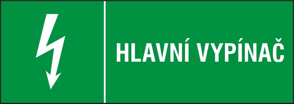 Samolepicí etiketa „HLAVNÍ VYPÍNAČ“.
