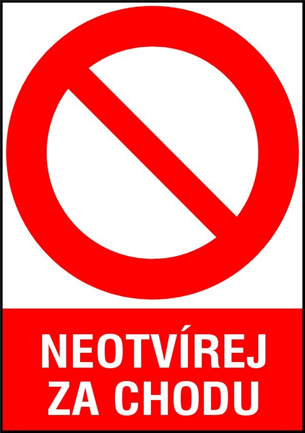 Samolepicí etiketa „NEOTVÍREJ ZA CHODU“.
