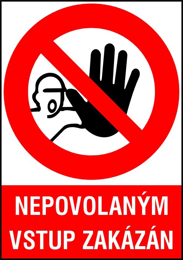 Plastová tabulka „NEPOVOLANÝM VSTUP ZAKÁZÁN“.