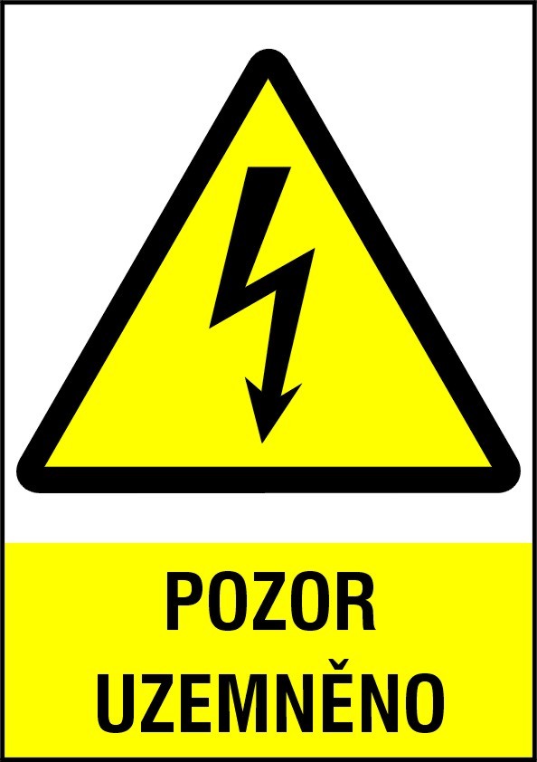 Samolepicí etiketa „POZOR UZEMNĚNO“.