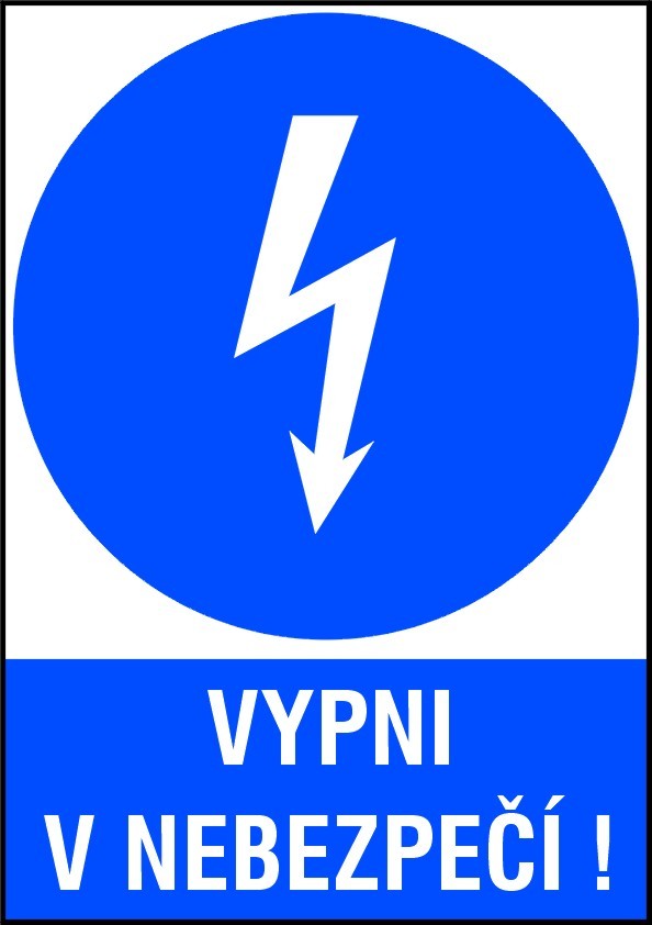 Plastová tabulka „VYPNI V NEBEZPEČÍ !“.